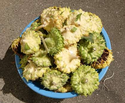 東館校舎の解体作業に入るため、畑にあるヒマワリの種を収穫しました。