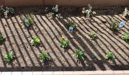 秋の深まりを感じる季節になり、PTA施設・保健委員会の皆さんが体育館前の花壇に花の植えつけてくださいました。