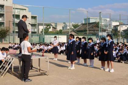 大阪市教育委員会指導部主催「第19回ワールドトーク(多文化スピーチ大会)」で、2年Gさんが素晴らしい発表と努力が称えられ、校長先生から表彰状が伝達され、生徒のみなさんから大きな拍手で祝福されました。
