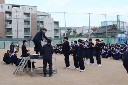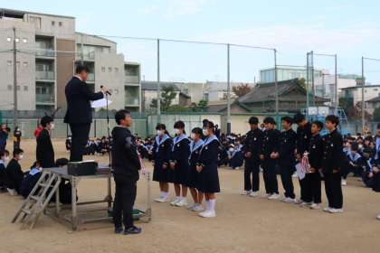 11月5日(日)長居公園周回コースで、阿倍野区青少年指導員連絡協議会、阿倍野区PTA協議会主催の第21回阿倍野区中学生親善駅伝大会に、男女各1チームが参加し、共に優勝を飾り、校長先生から表彰状の伝達及び盾が授与され、生徒のみなさんから大きな拍手で祝福されました。おめでとうございます!