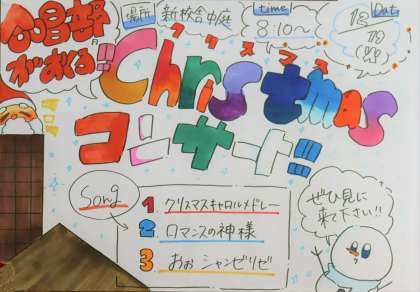 12月19日(火)朝、合唱部が2学期末を恒例イベント「クリスマスコンサート」を行いました。