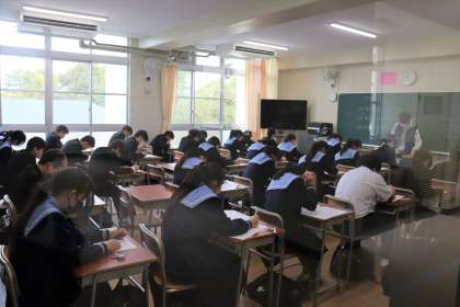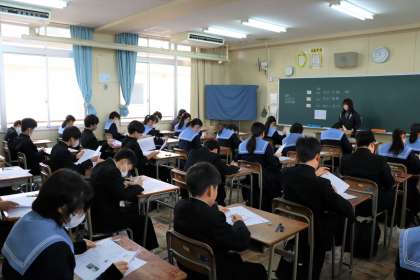 学年末テスト2日目、1年生は理科、英語、技術家庭科、2年生は英語、理科、技術家庭科のテストを実施しました。