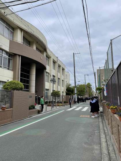 今日の挨拶は、生徒会と部活動のボランティア(女子バスケットボール部、男子ソフトテニス部)の生徒たちです。いつもありがとう!