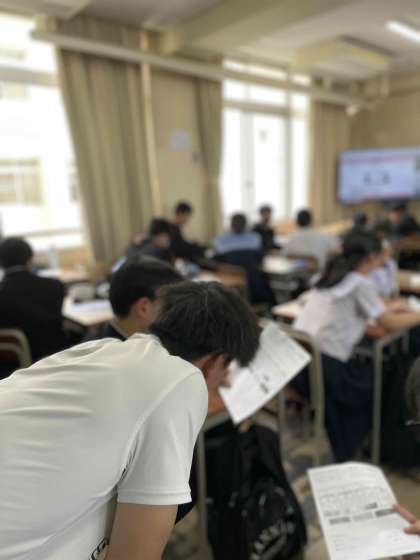 各教室にて、ワークシートを記入して、グループで意見を出し合い、より理解を深めています。本校の生徒たちは良く取り組んでいました。