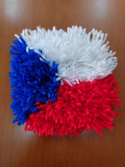 短くカットした毛糸を、メッシュ状のキャンパスに編み込んで、チェコの国旗をデザインしました。