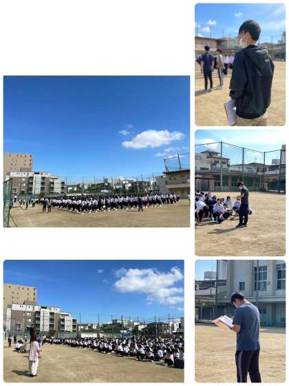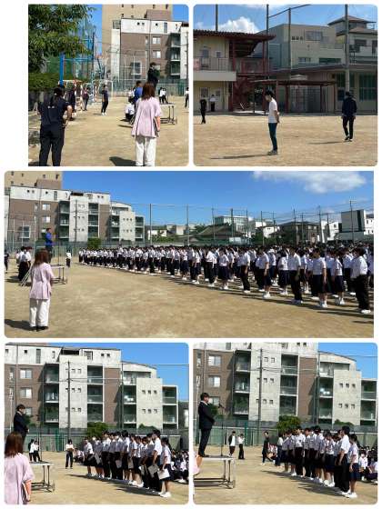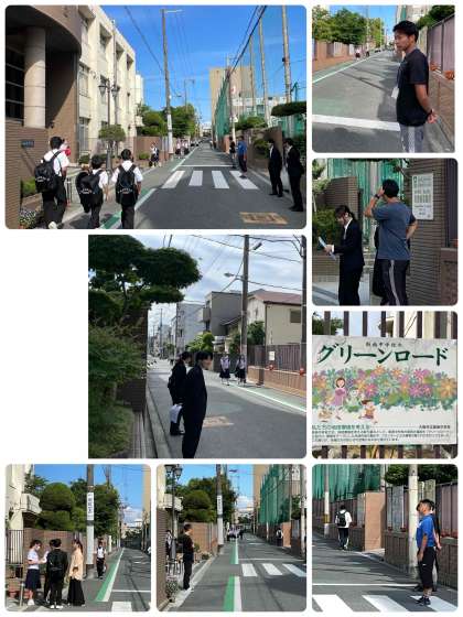 おはようございます。気温は24度です。今日も生徒会や先生方、教育実習生が登校を見守っています。