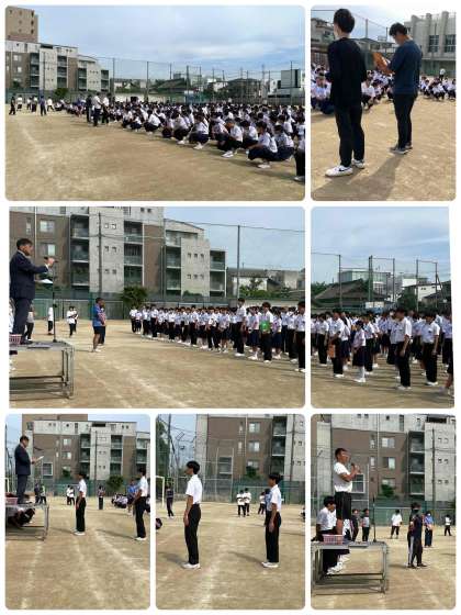 校長先生からは体育大会での生徒への称賛のお話、生徒指導主事の先生からは、学校生活での遅刻者が多い件と風紀委員の頑張りの話、体育館裏の下水工事の連絡がありました。