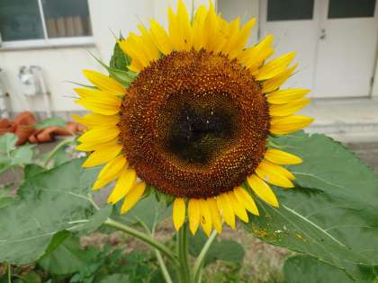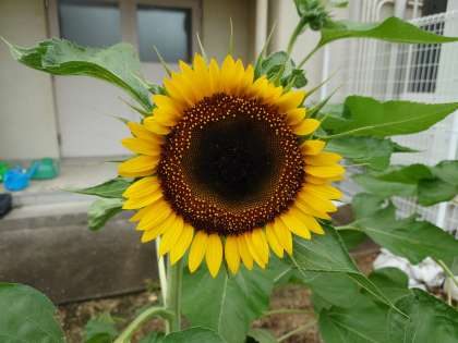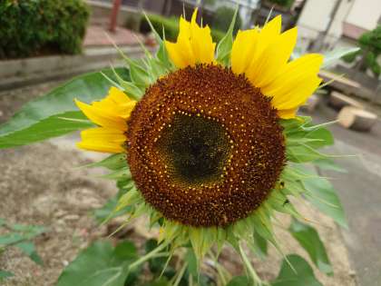 昨年の秋に咲いたヒマワリの種が地面に落ちたらしく、いつの間にか発芽し、開花しました。