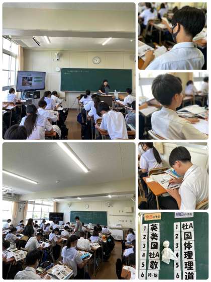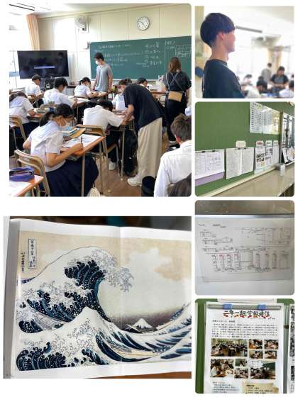 単元は鑑賞です。葛飾北斎『富嶽三十六景』の模写をしています。生徒たちはきちんと取り組んでいます。