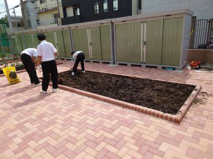 それに向け、「新くすのき畑」に野菜の土や腐葉土・堆肥等の肥料を入れて耕し、土作りをしました。