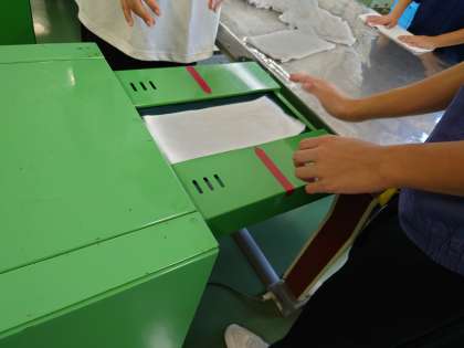将来の就労・生活自立に向けて、実際の職場を想定した状況下で「おしぼり加工」(おしぼりデリバリーサービス)の業務を体験し、労働への意識・意欲を高め、さらに作業態度・持続力・協調性・ビジネスマナー等の習得を目指しました。