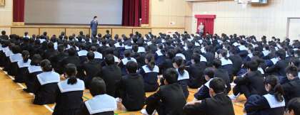 12月2日(水)3年学年集会で、先生から「卒業文集」の作成について、説明がありました。