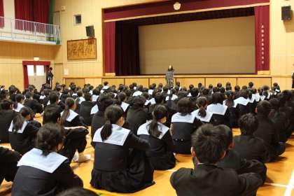 12月3日(木)2年学年集会では、学校生活の中で「人に優しい言葉をかけたり」「ちょっとした優しい気づかい」で、周りの人たちをうれしい気持ちや楽しい気分にさせて、気持ち良く過ごせるようにしましょう!という話がありました。