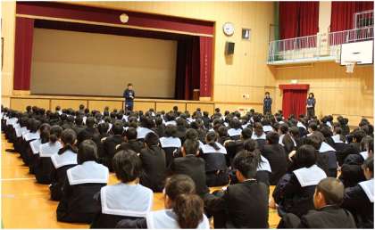 12月4日(金)朝 1年学年集会で、学校生活の中では色々なことに前向きの発想でチャレンジして行こう、という話がありました。