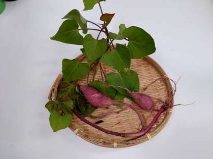 また、1学期の終わり頃、苗を植えたサツマイモを試し掘りしましたが、写真のように小さかったです。