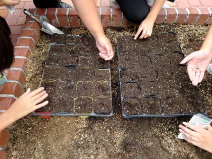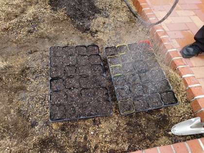 今日、小さいポッドにサラダかぶ・三つ葉・玉ねぎ・九条ネギの種をまきました。