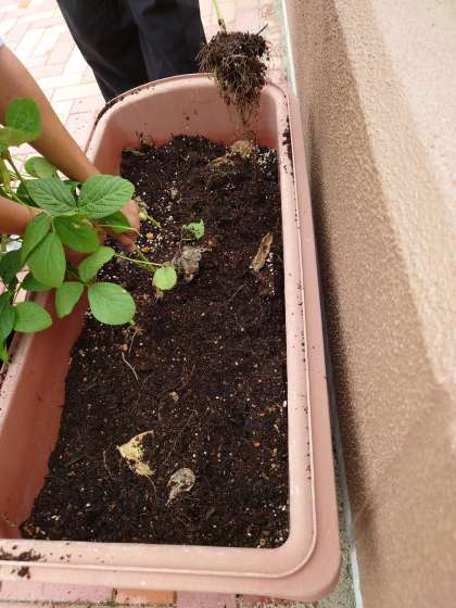 また、旬を過ぎた枝豆の苗を抜き、プランターを片付けました。