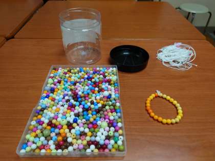 スキルアートで余ったビーズをリサイクルして、かわいいパステルカラーのブレスレットを作りました。