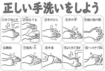・手洗いは30秒程度かけて、流水と石けんで丁寧に洗いましょう。