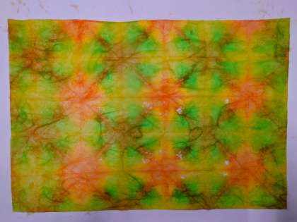 同じ3色を使って染めるのですが、染めるたびに模様が変わります。折った和紙を広げるとき「今度はどんな模様になるかな〜」ってわくわくしました。