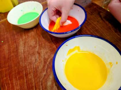 和紙を蛇腹に折ってから三角に折って、染めました。