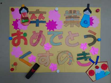 卒業生を祝福するため、「くすのき学級」の1・2年生が、かわいいポスターを作りました。
