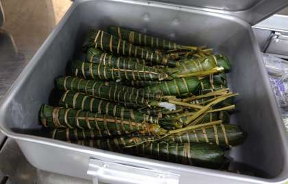 茅(ちがや)の葉で包んで作っていました。茅には邪気や