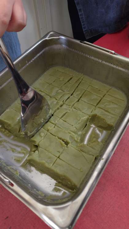 今日の給食献立「まっ茶ういろう」は年に1回、5月の新茶の季節に