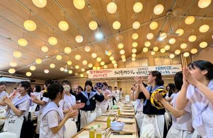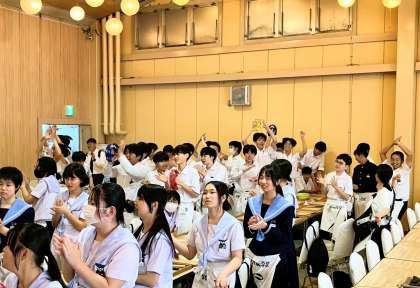 足踏みしている生徒をみんなで応援