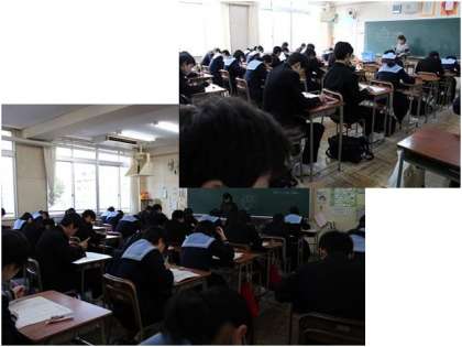 テスト終了後には、二日間の緊張から解き放された賑やかな笑い声が聞こえてきましたが、これからの高校入試などに向けた気持ちの高まりも感じられました。