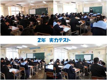 2月4日(木) 1年は「実力テスト(国語・理科・社会・英語・数学)」、2年は「実力テスト(国語・英語・社会・数学・理科)」に取り組みました。英語では、リスニングテストも行いました。