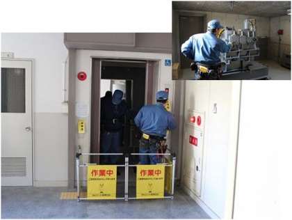 2月4日(木)午前 本館に設置されているエレベーターについて、専門の整備業者の方々に、定期点検を行っていただきました。