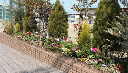 2月26日(金)午前 「第67回卒業式」を2週間後に控え、「PTA施設・保健委員会」の皆さんに花壇の花を植え替えていただきました。