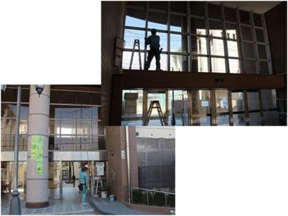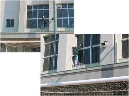 3月2日(水) 卒業式を来週に控え、普段は清掃できない「高所の窓ガラス」を専門業者にお願いして、綺麗にしていただきました。