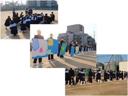 3月2日(水)放課後 7日(月)に行う「3年生を送る会」に向けて、1・2年実行委員会はグラウンドで、打ち合わせとリハーサルを行いました。