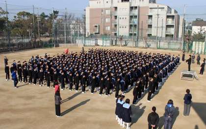 3月4日(金)朝 グラウンドで1・2年は、7日(月)朝に行われる「3年生を送る会」のリハーサルを行いました。