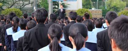 今日は、1年生が入学して初めての全校集会ですから、1年生の皆さんに阪南中学校が力を入れて取り組んでいることをお話しておきたいと思います。入学式や対面式の時の先輩の話の中にもありましたが「あいさつ」です。阪南中学校では、しっかりとあいさつをするということに力を入れて取り組んでいます。