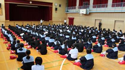 5月6日(金)朝 1年学年集会では、体育大会の行進の先頭となる「学級旗」の制作について、説明がありました。