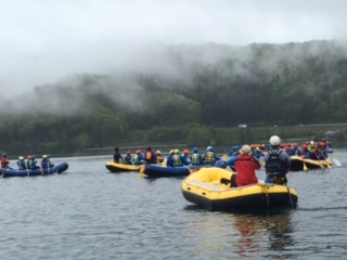 青木湖での、『ラフトピクニック』の様子です。 静かな湖面を優雅に進みました。