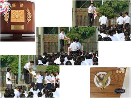 6月6日(月)朝 全校集会において、先週末に行われた「大阪市中学校春季総合体育大会」【卓球の部】男子団体で優勝の栄冠に輝いた卓球部に、【バスケットボールの部】男子で準優勝した男子バスケットボール部に、【陸上競技の部】女子低学年400mリレーで第3位に入賞した女子陸上競技部に、校長先生から表彰状や盾が伝達授与され、全校生徒から祝福の大きな拍手を受けました。