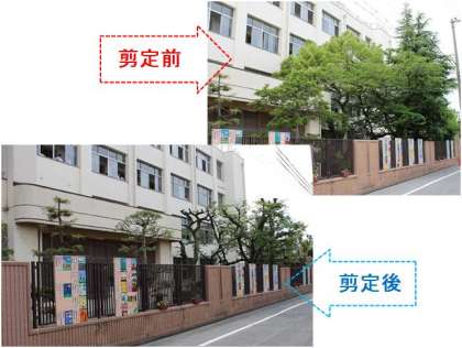 6月6日(月) 先週からグリーンロードに面した本館外庭の樹木の剪定を、成南校園営繕園芸事務所の園芸班にお願いしていましたが、さっぱりときれいにしていただきました。 ありがとうございました。
