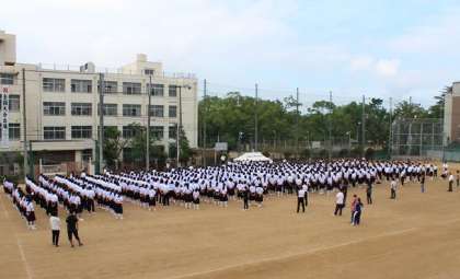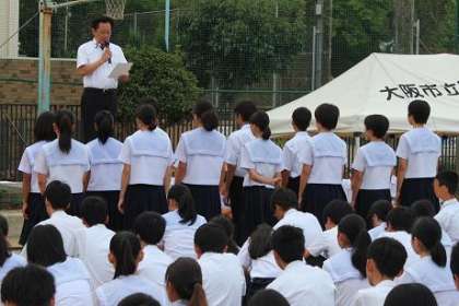 また「大阪市第8ブロックバスケットボール大会」において、準優勝に輝いた女子バスケットボール部に、優秀選手に選ばれた3年女子バスケットボール部員に、「大阪市中学生バスケットボールJrオールスター大会」において、優秀選手に選ばれた2年女子バスケットボール部員3名に、「大阪市第8ブロックバドミントン夏季大会」において、第3位に輝いたバドミントン部にそれぞれ表彰状が伝達授与され、全校生徒から大きな拍手で祝福を受けました。