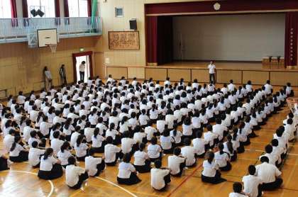9月14日(水)朝 3年学年集会では、夏休み中に多くの高校でオープンキャンパスや体験入学が行われ、参加した生徒もたくさんいるようですね。今月から来月にかけて、多くの高校で文化祭が行われます。まだ、体験入学などに参加していない生徒も見学してみてはどうですか。