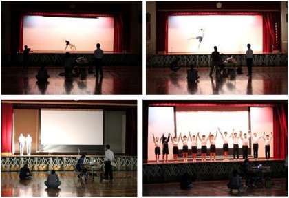 昨日同様に、2年、3年、生徒会執行部の順番で舞台上でのパフォーマンス、照明、大道具などの確認を行いました。