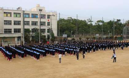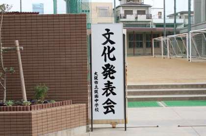 生徒数が多いため、開会式をグラウンドで行い、舞台発表も午前と午後の2回発表としています。午前は1・2年生が舞台発表を鑑賞し、午後には展示発表を見学します。3年生は午前と午後が入れ替わります。