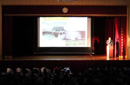 生徒会では、あいさつ運動や、生徒議会運営、行事の取り組みなど、より良い学校づくりのために様々な活動を行っています。今日は、一年を通しての活動報告をさせていただきます。