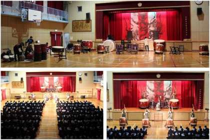 大小様々な和太鼓の高音、中音、重低音が迫力のあるハーモニーとなって、体育館の床からもその響きが体全体に伝わってきました。