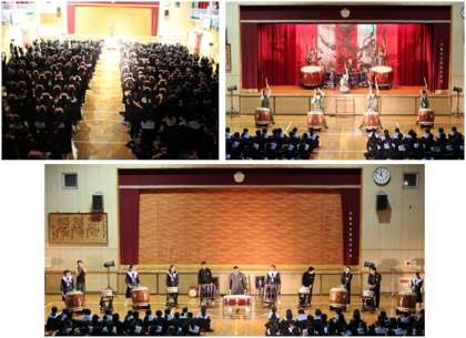 11月2日(水) 「芸術鑑賞」として体育館で、和太鼓エンターテイメント『打打打団天鼓』をお招きして、3年と1年5・6・7組が3・4限に、2年と1年1・2・3・4組が5・6限に≪和太鼓コンサート≫を鑑賞しました。
