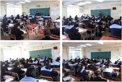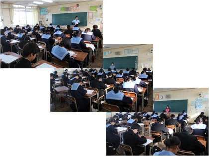 2年、3年と同様に「リーディングテスト(25分)・リスニングテスト(20分)・アンケート」を行いました。