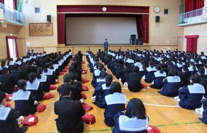11月18日朝 1年学年集会では来週の「期末テスト」に向けて、「テスト前学習については、計画表を作成して、きちんと実践できていますか。」という問いかけを行いました。